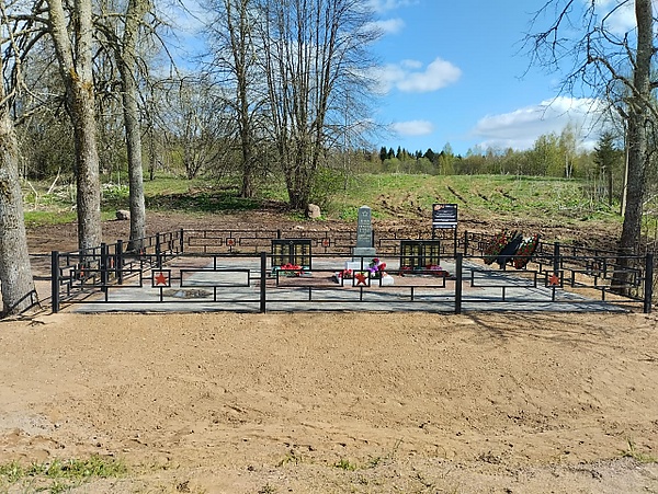 В братской могиле захоронено 228 воинов, имена всех установлены[1]. Среди павших — представители разных народов СССР[9]. Согласно архивным данным, здесь покоятся бойцы 1-й Ударной армии, 170-й стрелковой дивизии, 41-й отдельной стрелковой бригады и других частей, сражавшихся на этом направлении[10].