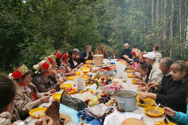 Для ритуальной общесельской трапезы на Русском Севере особо выкармливали и закалывали жертвенное животное — чаще всего быка, вола или барана — и варили в большом котле. Отсюда русское: архангельская «котельная вера». Трапезный стол был длинным («порой саженей до 30»), а мясо из котла делилось на две части: церковному причту и прихожанам по числу семей. Помимо мяса жертвенными продуктами были хлеб, воск и мёд, из которого варили пиво. Так, на Вологодчине (Грязовецкий уезд) в Ильин день в деревне пекли огромный каравай «для всего мира» (из-за этого ломали устье печи) и 12 караваев поменьше. У русских братчиной назывались и общие празднования в складчину (также ссыпщина, ссыпка, мирщина) разного характера и приуроченности. Среди них выделялись законодательно установленные «пивные» братчины (частным лицам разрешалось варить пиво до четырёх раз в год к церковным и семейным праздникам), к ним относились и популярные братчины — «никольщины» в честь «пивного бога» Николы. Сравни русское наниколиться — напиться в Николин день. На братчину избирался староста, руководящий пиршеством.