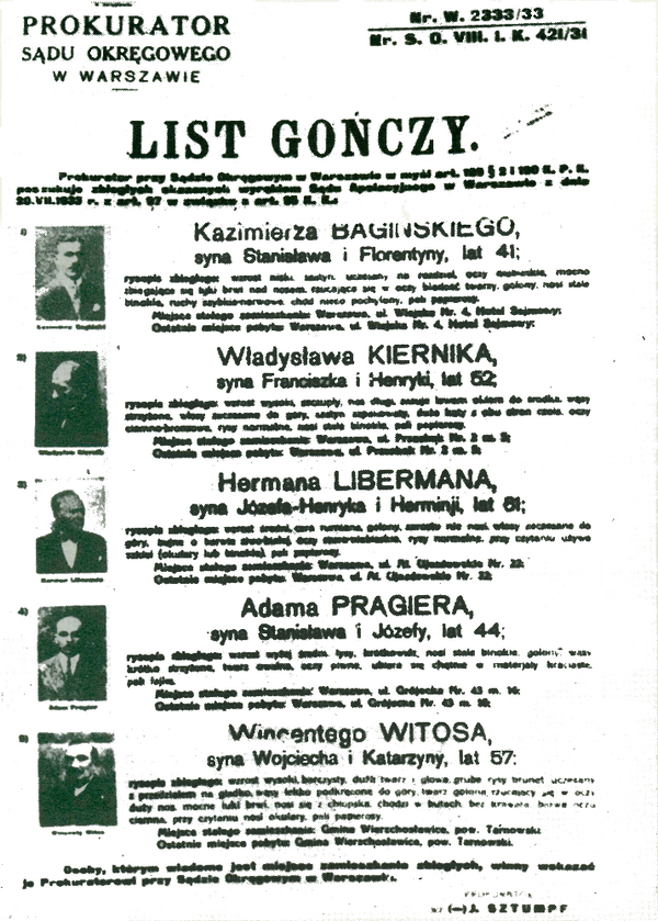 Дело было передано в Варшавский окружной суд прокурору Чеславу Михаловскому. Следствие вел судья Ян Демант.