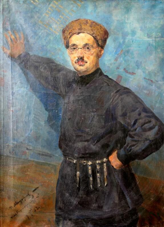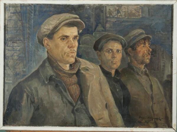 На лицевой стороне полотна изображена трёхфигурная композиция. В центре, в трёхчетвертном ракурсе к зрителю, представлен мужчина средних лет с волевым лицом и широко раскрытыми глазами. Он одет в кепи и спецкуптку-свитер, поверх левого плеча накинута тужурка. Справа от центральной фигуры находятся два мужчины. Общий колорит картины выдержан в серо-синеватых тонах. В правом нижнем углу аверса подпись: «Федор Модоров Урал. Челябтракторстрой 193…».