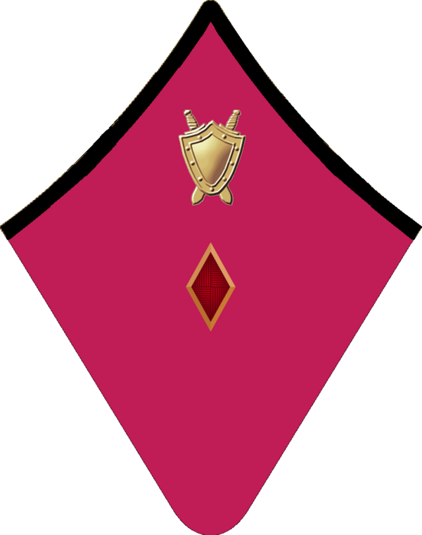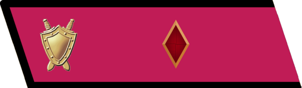 Над ромбом располагалась эмблема военно-юридического состава РККА — золотистый щит со скрещёнными мечами, установленная приказом НКО СССР от 10 марта 1936 года № 33 была.