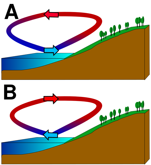 Здесь роль «воды» играет остывающий лес, а «суши» — поле. Лес более влажный, он медленнее прогревается и медленнее остывает[4].