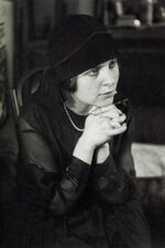 В 1929 году Брик уже сама выступила в роли создателя картины: вместе с режиссёром Виталием Жемчужным она не только написала сценарий документально-игрового фильма «Стеклянный глаз», но и участвовала в его производстве как постановщик[68]. Лента представляла собой пародию на «целлулоидные страсти», которыми изобиловал чёрно-белый кинематограф того времени[69]. Для участия в съёмках Лиля Юрьевна пригласила Веронику Полонскую, поспособствовав тем самым знакомству Маяковского с молодой актрисой МХАТа, включённой через год поэтом в число членов его семьи[70].