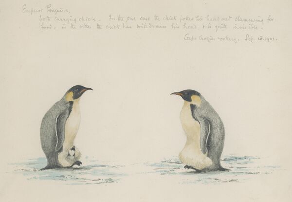 7 сентября Уилсон впервые отправился на мыс Крозье изучать императорских пингвинов, где с перерывами пребывал до декабря. К колонии пингвинов удалось подобраться впервые 18 октября, и в результате этого похода биологи получили исчерпывающие сведения о физиологии и поведении этих птиц. Однако Уилсону не удалось получить яиц с эмбрионами на ранней стадии развития, в результате чего он пришёл к выводу, что необходим поход полярной ночью. В период экспедиции «Дискавери» такой поход был неосуществим[185].