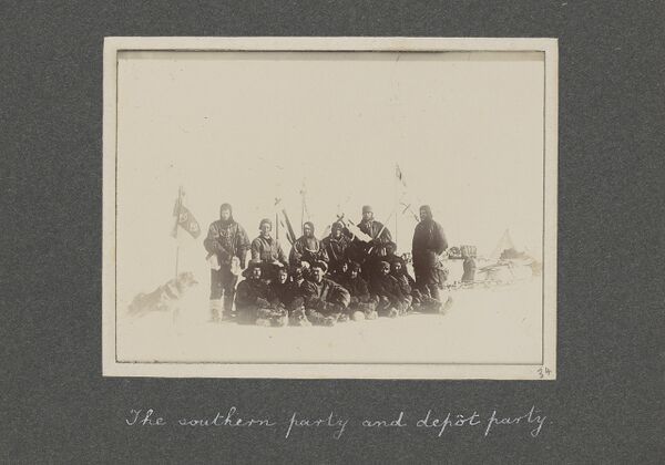 Закупками необходимого снаряжения занимался Армитедж, на что ему было ассигновано 2000 фунтов стерлингов (206 400 в ценах 2018 года). Полярная одежда и снаряжение для санных походов были закуплены в Норвегии, полярные шубы были из волчьего меха, а спальные мешки сшили из оленьих шкур[76]. Штормовки были заказаны в Великобритании. Научное оборудование предоставило Британское адмиралтейство, в том числе комплект астрономических, метеорологических и магнитометрических приборов, а также маятник для гравиметрических исследований, сейсмограф, мареограф, драги и лоты[77]. Снаряжение также демонстрировало отсутствие полярного опыта: в заказанных для экспедиции палатках пол не составлял единого целого с пологом, что выяснилось, однако, уже после начала санных походов[78].