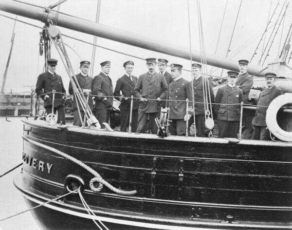 Адмиралтейство не позволило Скотту поднять над «Дискавери» белый флаг Королевского ВМФ, поэтому судно пришлось регистрировать в Королевском яхт-клубе Харвича[68].