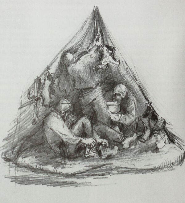 К рождественскому сочельнику все мысли путешественников были только о еде, и они в деталях расписывали друг другу подробности праздничного стола. В действительности нехватка топлива делала любые изыски невозможными. Уилсон писал в дневнике, что праздничный завтрак включал тюленью печень и бекон, зажаренные с сухарными крошками, полный чайник горячего чая и по ложке ежевичного варенья на каждого. На ужин сварили крутую похлёбку из пеммикана «так, чтобы ложка стояла», и какао[151]. Сюрприз заключался в том, что Шеклтон извлёк из носков куски пудинга с изюмом и застывший кусок искусственного мёда[152].