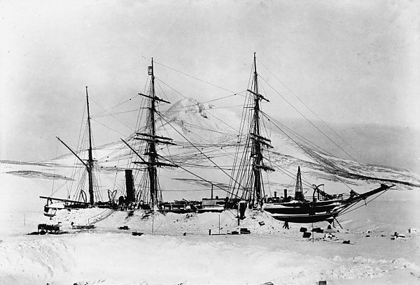 8 февраля экспедиция под парусами вернулась в залив Мак-Мердо и стала готовиться к зимовке: Скотт исходил из постулата, что антарктическое лето скоротечно. Мелководье как будто бы исключало возможность ледовых сжатий, а лёжка более чем в сотню тюленей означала изобилие пищи и отсутствие цинги[105]. Команда должна была жить на судне — таково было первоначальное мнение и Маркэма, и Скотта, однако для мастерской и на случай кораблекрушения требовалось убежище[106]. Специфической особенностью судна, спроектированного в викторианскую эпоху, было отсутствие на «Дискавери» туалетов, приспособленных к зимним условиям. Плотнику пришлось срочно сооружать латрины, отдельные для офицеров и рядовых[107]. Работы по обустройству начались 10 февраля, причём в честь начала зимовки провели футбольный матч. В тот же день за грубость в общении с Шеклтоном и самим Скоттом командир приказал заковать на восемь часов в кандалы повара Бретта. При перевозке стройматериалов на берег попытались задействовать собак, однако Скотт не сумел поладить с ними, и в дальнейшем ездовые собаки вызывали у него раздражение. Лыжи также вызывали раздражение, и Скотт полагал, что они непригодны для транспортировки грузов[108].