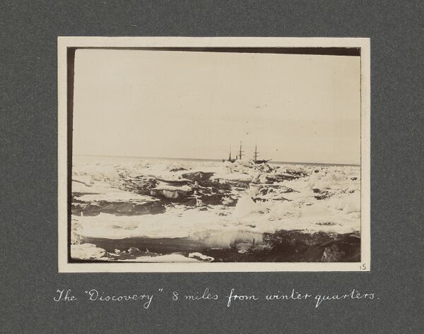Наконец, 21 января экспедиционеры увидели дым вулкана Эребус, залив, в который вошёл «Дискавери», был назван Мак-Мердо — в честь одного из офицеров Росса. Скотт надеялся, что это не залив, а пролив, который позволит пройти южнее, но это оказалось неверным. Обследовав места возможной зимовки, Скотт направился вдоль Великого ледяного барьера на восток, преодолев более 500 миль. 30 января было получено подтверждение данным Росса: в этих широтах была земля, Скотт назвал её в честь короля Эдуарда VII. Высадиться не удалось, помешали сплошные ледовые поля. Повернув обратно, 4 февраля было решено исследовать глубоко вдающуюся в барьер бухту, которую в 1898 году посетил Борхгревинк на «Южном кресте». Армитедж запросил позволить ему исследовать поверхность барьера и вместе с Бернакки и четырьмя матросами продвинулся на 18 миль вглубь Антарктиды, заночевав на свежем воздухе[101].