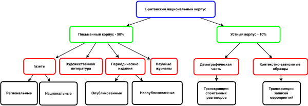 По состоянию на 2001 год в BNC все ещё отсутствовала классификация письменных текстов, кроме распределения по сферам (газеты, художественная литература и т. д.), и классификация разговорных текстов, кроме разделения по контекстам и демографическим или социально-экономическим классам участников разговора. Например, в корпус было включено огромное разнообразие образцов художественных текстов (романов, рассказов, поэм и т. п.), но информация об их поджанрах отсутствовала в заголовках образцов и в документации BNC. Таким образом, для исследователей знание о жанровом разнообразии было практически бесполезным, так как для них не было простой возможности получить произведения желаемого поджанра[19].