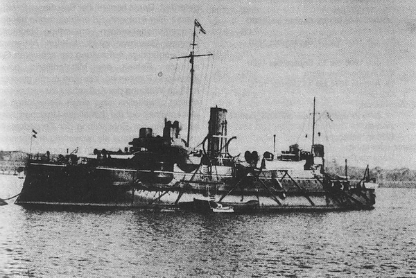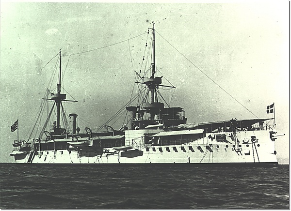 Спустя десять лет датский флот предпринял попытку создать броненосец с минимально возможной осадкой, для действий в мелководных районах датских проливов[40]. В 1897 году в строй вступил «Скьёльд» — один из самых маленьких броненосцев в мире. За счёт водоизмещения, лишь немногим превышавшего 2000 тонн, удалось добиться осадки около 4 м. Вооружение столь малого корабля естественно оказалось слабым. «Скьёлд» имел одну 240-мм пушку в носовой башне и три 120-мм орудия в одиночных башенных установках в корме[41].