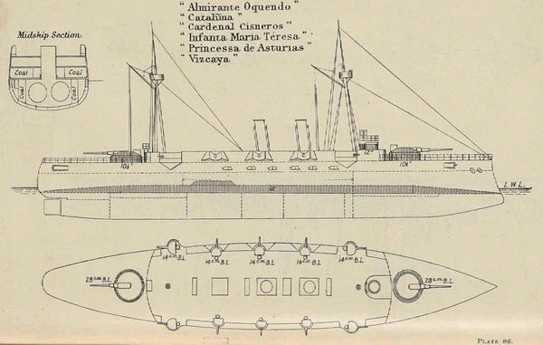 «Инфанта Мария Тереза» — заложен 24 июля 1889, спущен 30 августа 1890, вступил в строй 28 августа 1893 года.