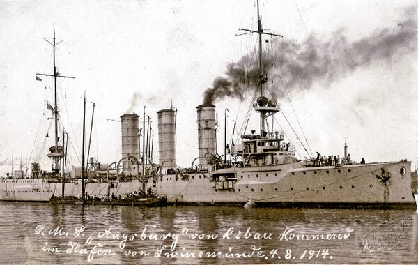 | SMS Augsburg | Kaiserliche Werft, Киль | 1908 | 10 июля 1909 | 1 октября 1910 | 3 сентября 1920 | Передан флоту Японии, разобран на металл в 1922 году[прим. 4] В 2017 году в районе острова Матуа найден затонувшим экспедицией Министерства обороны России |