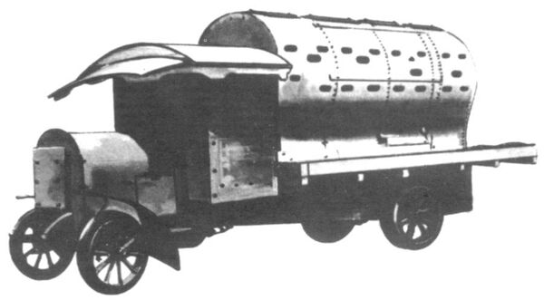 В основе своей бронеавтомобиль представлял из себя обычный трёхтонный заднеприводной грузовой автомобиль «Даймлер». Кабина и двигатель машины частично защищалась навесными листами железа, а на месте грузовой платформы был установлен служивший боевым отделением паровой котёл, также вывезенный с завода (по другим данным, боевое отделение было собрано из дымовых коробок старых локомотивов[2]). На бортах котла имелись бойницы, причём часть из них была действительно прорезана, а часть — нарисована, чтобы сбить противника с толку[1]. Огонь сквозь них вели помещавшиеся в отделении солдаты-десантники. «Вход» в боевое отделение осуществлялся через дверь (люк дымовой коробки паровоза) в корме машины.