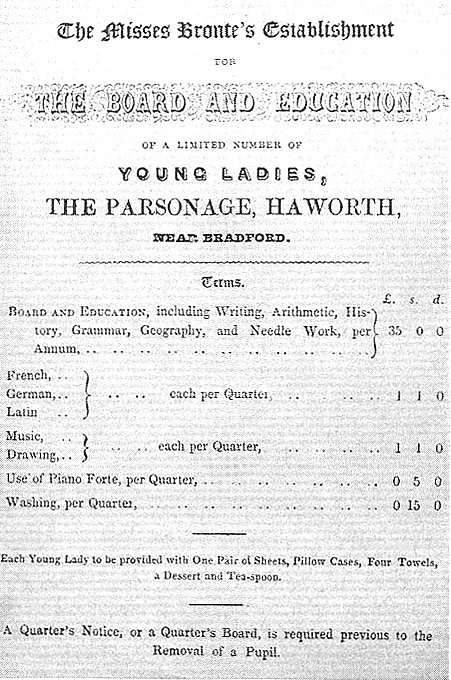Тётушка Шарлотты, миссис Бренуэлл, умерла; здоровье и зрение мистера Бронте ослабело. Сёстры Бронте уже не имели возможности покинуть Хоэрт, чтобы арендовать школьное здание в более привлекательной местности. Шарлотта решается основать пансион прямо в Хоэртском пасторате; но их семейный дом, расположенный на кладбище в довольно дикой местности, отпугнул родителей потенциальных учениц, несмотря на сделанные Шарлоттой денежные скидки.