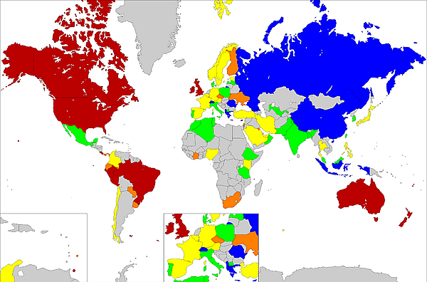 В исследованиях отмечаются относительно высокие показатели заболеваемости в Новой Зеландии, Великобритании, на Кубе. Это связывают с тем, что над островами повышается концентрация аллергенов как благодаря местной флоре, так и за счёт аллергенов, приносимых океаническими воздушными потоками[16].