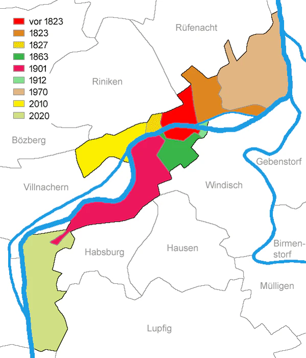 В состав Бругга входят ранее самостоятельные коммуны:
