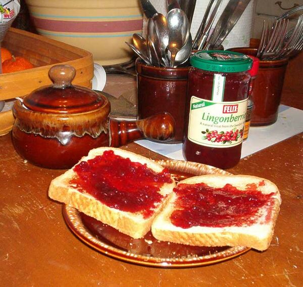 Брусничный соус (также брусничный джем или брусничное варенье) — основной продукт североевропейской кухни, также широко популярный в Центральной и Восточной Европе. Брусника (Vaccinium vitis-idaea) растёт на низких вечнозелёных кустарниках в арктической тундре по всему Северному полушарию от Евразии до Северной Америки[1][2].