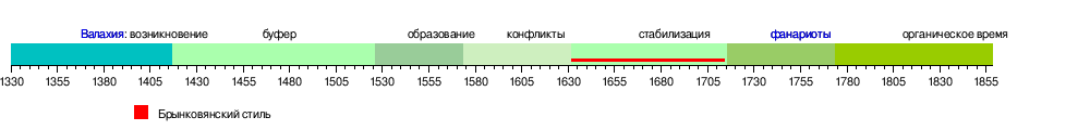 Архитектурный стиль был задуман Матею Басарабом и Щербаном Кантакузино, которые фактически заложили основы более позднего брынковянского стиля, хотя их стиль более простой. Это время в истории Валахии известно как Валашское Возрождение. Брынковянский стиль можно охарактеризовать как цветочный, потому что это нечто среднее между цветочным ренессансом и барокко. Это чрезвычайно богатый стиль, в значительной степени основанный на эффектах сценического дизайна, таких как резные камни, порталы, колонны и головы колонн, построенных очень специфическим образом, определяющим архитектуру Константина Брынковяну[1].