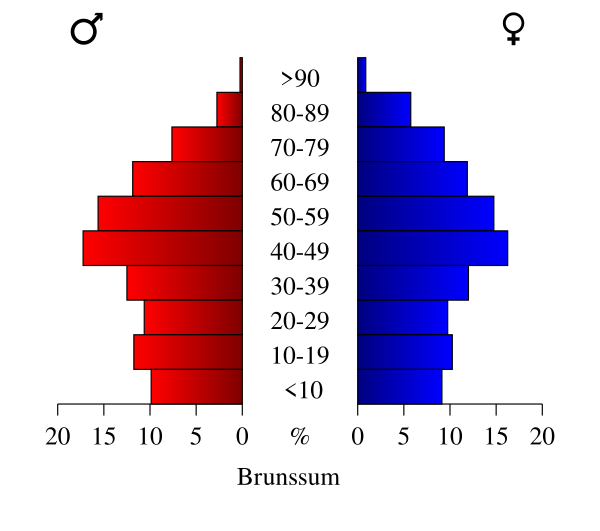 В конце 2009 года население Брюнсюма составляло 29 448 человек, что составляет рост в два процента с 1960 года[1]. Из этого числа примерно 20 процентов составляют жители моложе 20 лет и столько же старше 65 лет; распределение по полу было равномерным: женщины составляют примерно 51 процент населения города[2].