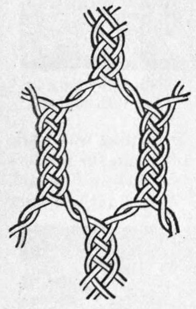 Резо имеет шестиугольную форму, с четырьмя нитями, переплетенными четыре раза с двух сторон, и двумя нитями, скрученными дважды с оставшихся четырёх сторон.