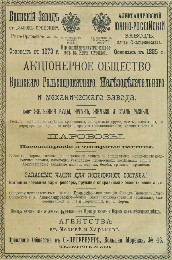 В 1880-е годы, когда В. Н. Тенишев был назначен председателем правления компании, завод начал выпуск первых железнодорожных грузовых вагонов, платформ и цистерн, а также освоил производство броневых плит для боевых кораблей, стальных листов для пароходов и элеваторов, литых колёс для паровозов и вагонов. В 1882 году на Всероссийской промышленной выставке в Москве за высокое качество продукции Брянский рельсопрокатный завод получил право изображать на своих изделиях государственный герб — двуглавого орла.