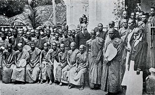 Во второй половине XIX века на Шри-Ланке начался буддийский ривайвел — национальное движение за возрождение древних традиций буддизма, ставшее ответом на христианское миссионерство и британскую колонизацию[96]. Толчок движению дали публичные дискуссии между христианскими священнослужителями и буддийскими монахами, такими как Мигеттуватте Гунананда Тхера и Хиккадуве Шри Сумангала Тхера. Пять больших публичных дебатов с протестантскими миссионерами состоялись в 1865-м (дебаты Баддегама и Варагода), 1866 (Уданвита), 1871 (Гампола) и в 1873 году (Панадура). Среди обсуждаемых тем были: Бог, душа, воскресение, карма, перерождение, нирвана и принцип взаимозависимого возникновения[97]. В знаменитой дискуссии, прошедшей в 1873 году в городе Панадуре, Гунананда Тхера одержал явную победу[98].
