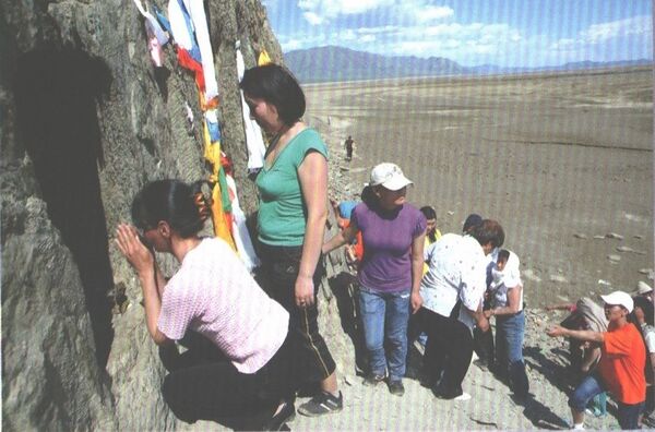 Скала Суме стала местом поклонения для буддистов из разных уголков России и других стран, которые в конце мая — начале июня до заполнения водохранилища приезжают сюда.
