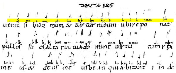 - Santosuosso, Alma Colk. Letter notations in the Middle Ages. Ottawa: Institute of Mediaeval Music, 1989.