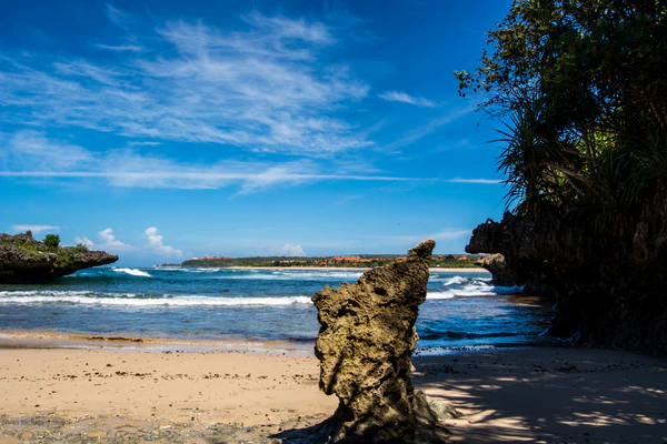 Южный и восточный берега полуострова омываются водами Индийского океана, западное побережье выходит на пролив Бали, который соединяет Индийский океан с Тихим. Берега в целом изрезаны не очень значительно, лишь в северо-восточной части имеется узкий длинный мыс Беноа, у оконечности которого находится небольшой остров Серанган, противоположный берег которого, в свою очередь, находится на расстоянии нескольких сот метров от основной территории Бали. Акватория к востоку от перешейка, в значительной степени замыкаемая мысом Бено́а и островом Серанган, известна как залив Беноа, а акватория к западу от перешейка — как Джимбаранская бухта (индон. Teluk Jimbaran)[1][2].