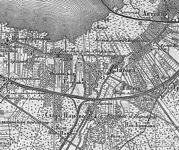 К северу от шоссе, располагались постоялые дворы: около моста через Ивановку был «Жёлтый кабачок», а у моста через Лиговку — «Соломенный кабачок».