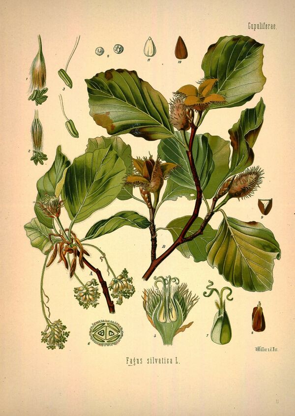 Цветки бука дают пыльцу-обножку медоносным пчёлам[28].