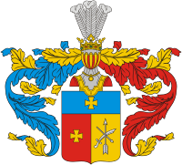 Описание герба: Выдержка из Общего гербовника Щит разделен горизонтально на две части, из коих в верхней в голубом поле изображен золотой крест. В нижней части, разрезанной перпендикулярной чертой, находится в правом красном поле золотой же крест, а в левом золотом поле крестообразно положены меч, бунчук и стрела, остриями обращенные вверх. Щит увенчан обыкновенным дворянским шлемом с дворянской на нем короной и тремя страусовыми перьями. Намет на щите голубого и красного цвета, подложенный золотом. Герб внесен в Общий гербовник дворянских родов Российской империи, часть 2, 1-е отделение, стр. 120 |