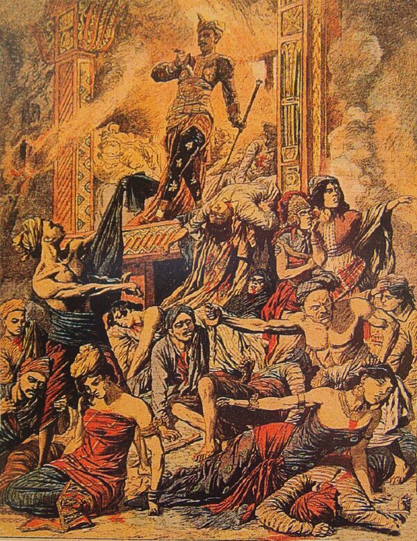 В 1846 и 1848 подверглось нападению со стороны голландцев, которые в 1849 разгромили столицу и присоединили Булеленг к своим колониальным владениям[1]. Правитель Булеленга Густи Нгурах Карангасем и 400 его приближённых предпочли покончить жизнь самоубийством, совершив пупутан (пронзив себя крисом), чем сдаться колонизаторам.