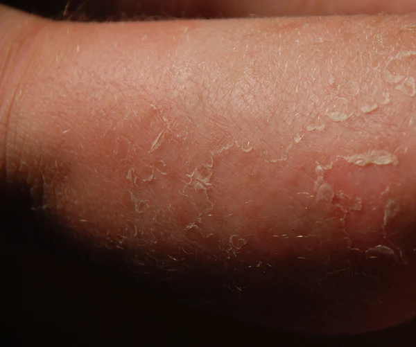 По мере взросления у пациентов развивается поверхностный, диффузный серовато-коричневый гиперкератоз, наиболее выраженный на сгибательных поверхностях крупных суставов, на конечностях и нижней части туловища. Гиперкератоз обычно менее плотный и грубый, чем при эпидермолитическом ихтиозе, и может иметь волнистые края. На других участках кожа выглядит почти нормальной, а ладони и подошвы обычно не поражаются или вовлекаются минимально[2][7].