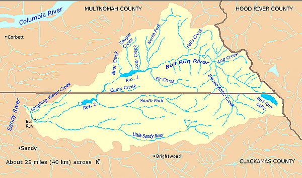 Вероятно, аборигены жившие вдоль реки Колумбия посещали район бассейна Булл-Ран ещё 10 тысяч лет назад. В дальнейшем ими были проложены тропы в Каскадных горах, в том числе и у верховий Булл-Ран возле вулкана Худ. В середине XIX века эти тропы использовались первопроходцами и переселенцами чтобы добраться до плодородной долины Уилламетт. В 1890-х годах бассейн реки Булл-Ран был выбран как основной источник снабжения питьевой водой Портленда, после чего началось активное строительство гидротехнических сооружений и развитие сопутствующей инфраструктуры на этой территории: постройка плотин, водовода, электростанции, запруд, дорожной сети, железнодорожной линии. Первая вода из Булл-Ран начала поступать в Портленд по водоводу, начавшему действовать в 1895 году.