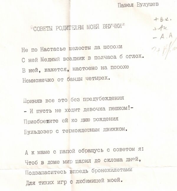 Павел Булушев, судя по многим его стихам, прошел хорошую поэтическую школу, хотя первые ее классы — подражание любимым поэтам — остались далеко позади. Есть в стихах П. Булушева удивительное соединение — есть что-то мальчишеское, школярское в его видении войны и та овеществленная реальность, которая не дает и не может дать возможности отступить от подлинного какие бы искушения стилизации ни возникали перед автором.