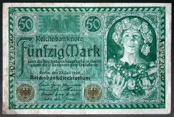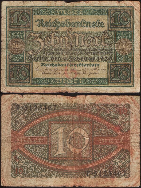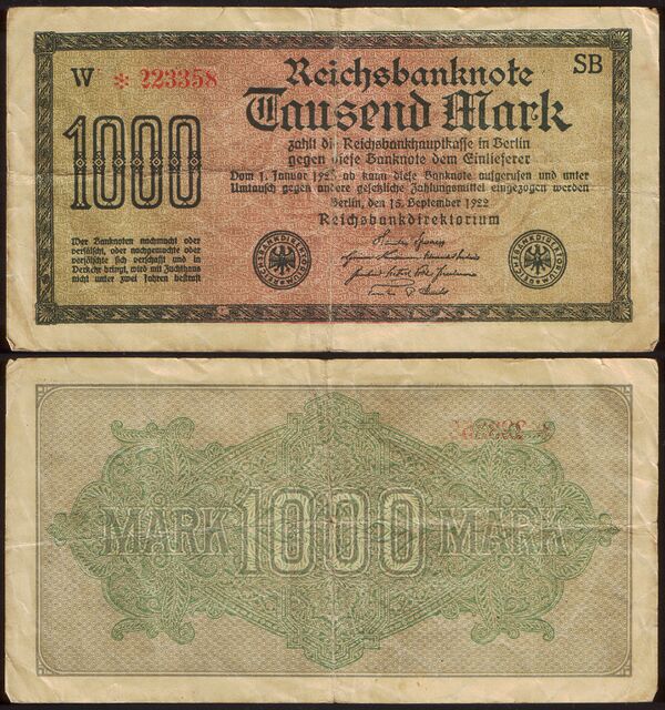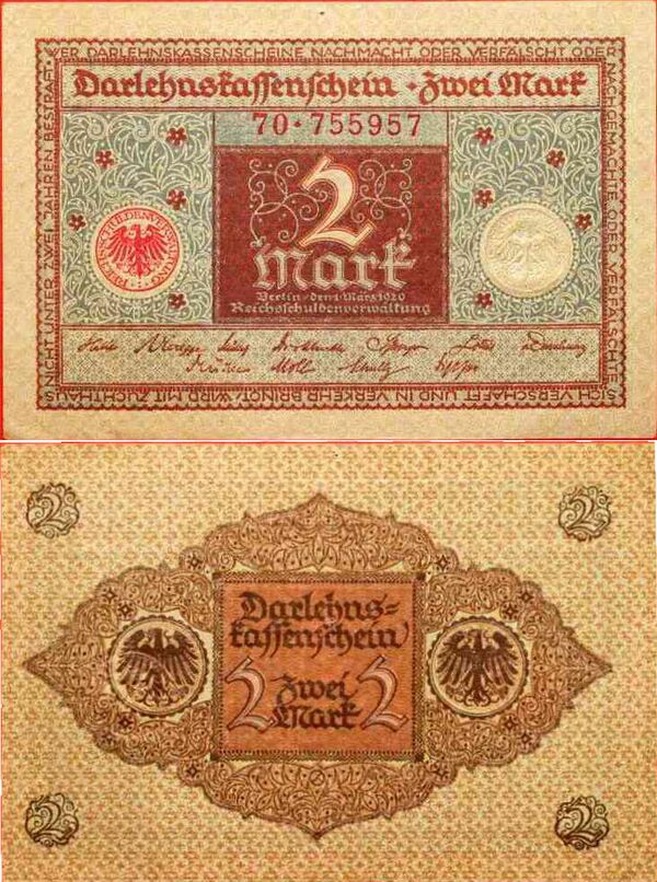 | Банкноты | 1, 2, 5, 10, 20, 50, 100, 500, 1000, 5000, 10 000, 20 000, 50 000, 100 000, 200 000, 500 000, 1 000 000, 2 000 000, 5 000 000, 10 000 000, 10 000 000, 50 000 000, 100 000 000, 500 000 000, 1 000 000 000, 5 000 000 000, 10 000 000 000, 20 000 000 000, 50 000 000 000, 100 000 000 000, 200 000 000 000, 500 000 000 000, 1 000 000 000 000, 2 000 000 000 000, 5 000 000 000 000, 10 000 000 000 000, 20 000 000 000 000, 50 000 000 000 000, 100 000 000 000 000 марок |