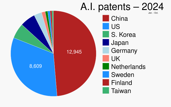 Коммерческий рынок ИИ контролируется американскими корпорациями Alphabet Inc., Amazon, Apple Inc., Meta Platforms и Microsoft, инвестиции которых в ИИ превышают объёмы венчурного финансирования в США[52].