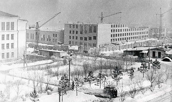 За период с начала 1971 по октябрь 1983 гг. были построены 3-й (основной) учебный корпус (11 тыс. м²) с актовым и спортивным залами (1975)[47], увеличивший учебные площади более, чем вдвое, большая столовая на 530 мест, соединённая с основным учебным корпусом подземным переходом (1977), 40-квартирный жилой дом для преподавателей (1973), завершено строительство студенческих общежитий на 850 мест (1973)[48]. Перед новым учебным корпусом весной 1976 г. был разбит сквер[49][50], идею естественной планировки которого (в соответствии с протоптанными по вспаханной земле тропинками) предложил ректор. Вместе со студентами и преподавателями он участвовал в посадке первых деревьев[51][52][53].