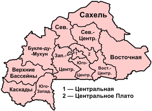 | 1 | Букле-ду-Мухун | Boucle du Mouhoun | Дедугу | 6 | 34 479 | 1 434 847 | 41,62 |