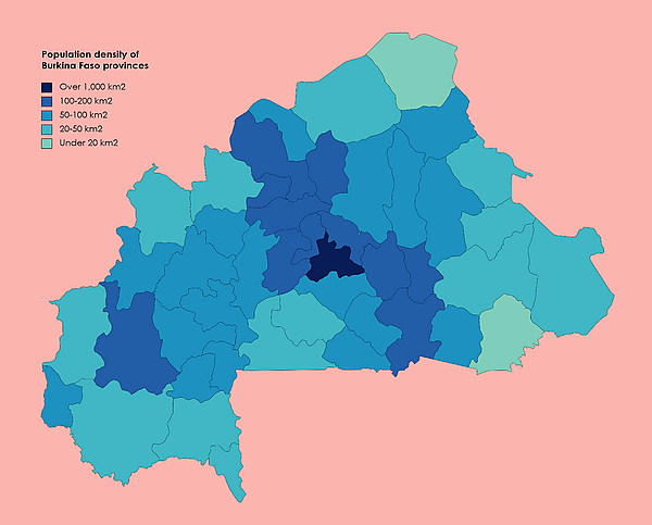 Буркина-Фасо разделена на 13 областей, 45 провинций и 301 территориальный департамент.