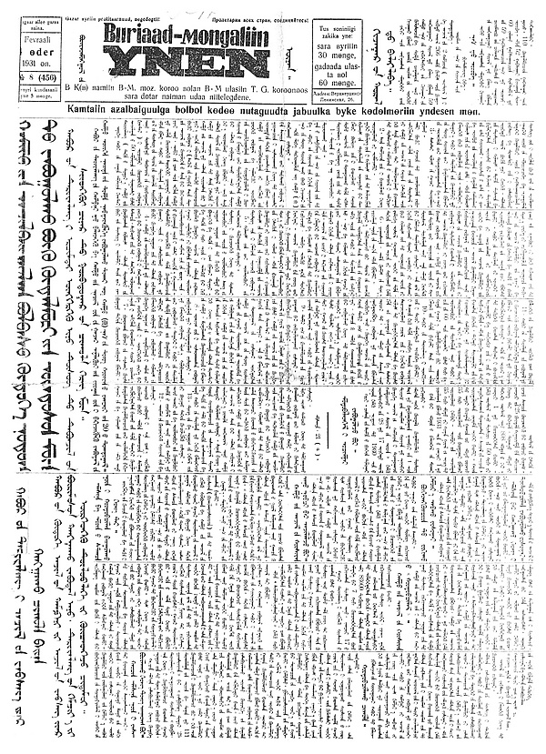 С 1931—1938 годах газета «Буряад-Монголой үнэн» печаталась на латинском шрифте. Латиница впервые наглядно показала диалектные различия бурят, но при этом бурятский язык, написанный на латинице, все ещё продолжал сохранять свою монгольскую основу языка: лексику, грамматические правила, стилистику и т. д.