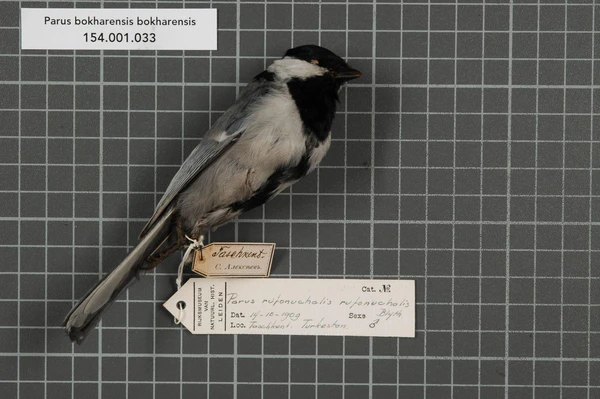- Parus bokharensis turkestanicus — крыло 68-74 мм, клюв — 8,6-10,0 мм[5].