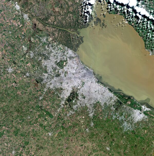 Буэнос-Айрес — город южного полушария, расположенный на 34° 36' южной широты и 58° 26' западной долготы, в южной части материка Южная Америка, на расстоянии 275 км от Атлантического океана в бухте залива Ла-Плата, на левом берегу реки Риачуэло[67]. В 220 км от города на другом берегу залива Ла-Плата расположена столица Уругвая — Монтевидео.