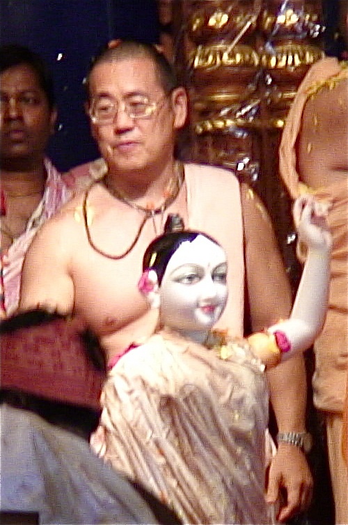 В апреле 1972 года, во время второго визита Прабхупады в Японию, Бхану сопровождал своего духовного учителя на проповеднические программы и утренние прогулки в Токио и Кобе.[16] В этот раз, Бхану заслужил похвальные отзывы Прабхупады за правильное санскритское произношение[17] и получил от него наставления о правилах поклонения мурти и проведении вайшнавских храмовых ритуалов.[18] Позднее, в 1977 году, этот опыт помог Бхану установить мурти и стандарты поклонения им в новом храме ИСККОН в Гонолулу.[19]
