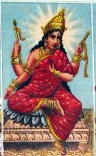 Богиня Бхубанешвари это прекрасная, юная, улыбающая богиня с грудями, полными молока, которым она питает все три мира, изображается сидящей на красном лотосе. Её обнажённое тело украшают разноцветные жемчуга, голову — драгоценная корона. О ней говорится, что она есть «треугольник» (символ йони), и третий глаз появился у Шивы якобы для того, чтобы лучше видеть её и наслаждаться её красотой.
