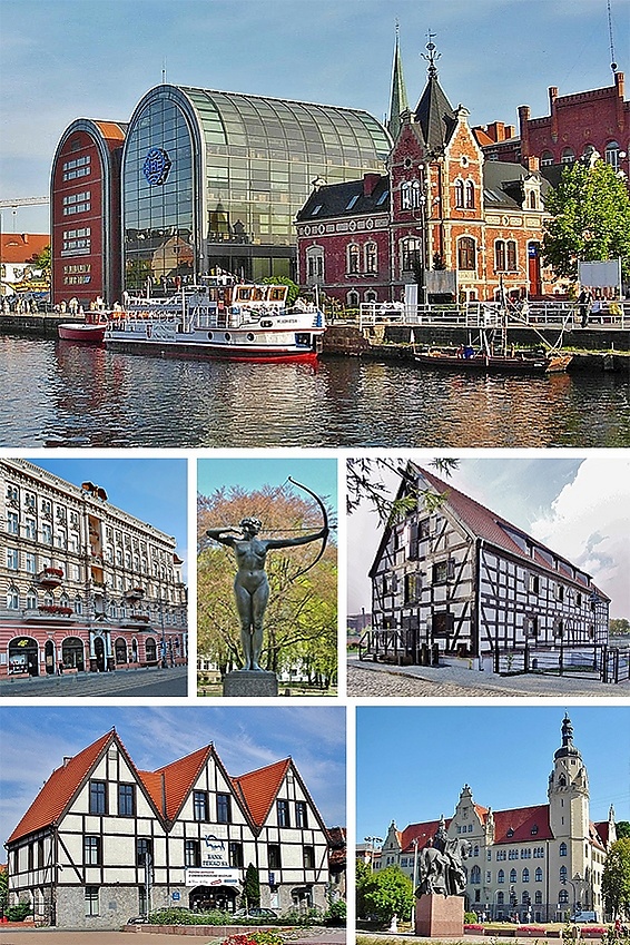 Архитектурные памятники в районе реки Брды и Старого города: позднеготический приходский костёл с чудотворной иконой Богородицы с розой, бывшее зернохранилище с деревянной каркасной конструкцией 18—19 вв., костёл кларисок в смешанном стиле готики и ренессанса. Воды реки Брды и Нотеци соединяются быдгощским каналом с сохранившимся старым оборудованием. Власти выступают с ходатайством о занесении этого памятника инженерного искусства XVIII века в список наследия ЮНЕСКО. Памятник Казимиру Великому.