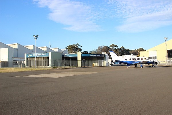 Небольшой пассажирский терминал способен обслуживать до 200 пассажиров в час. Бесплатная парковка для автомобилей расположена рядом с терминалом. Для прибывающих пассажиров возможно заказать такси прямо к терминалу. Главный въезд в аэропорт обслуживается местным автобусным маршрутом до станции Бэнкстаун.