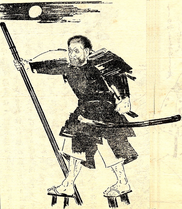 - Grunwald Center for the Graphic Arts, UCLA Hammer Museum: woodcut print — «Ushiwaka and Benki duelling on Gojo Bridge» or «Gojo Bridge, an episode from the Life of Yoshitsune, Chronicles of Yoshitsune» by Tuskioka Yoshitoshi (1839—1892)